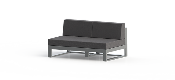 La línea Cádiz está fabricada con perfiles de aluminio de 75 x 25 mm. No posee apoyabrazos. La base se encuentra unida en los laterales y la parte trasera en forma de “C”.